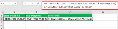 calculate datetime difference in excel