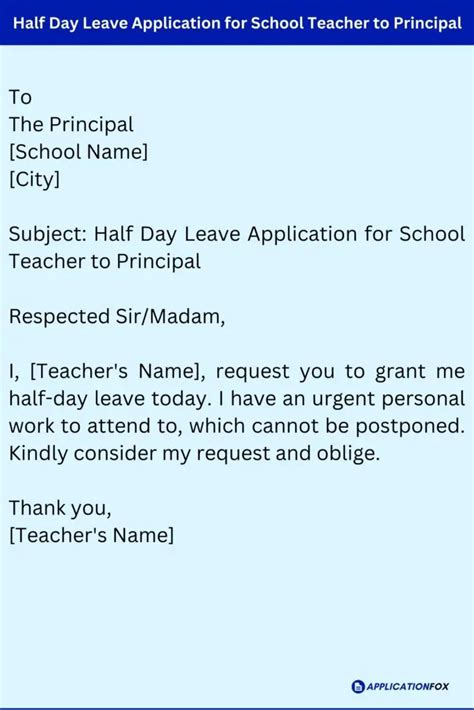 half day application for school teacher